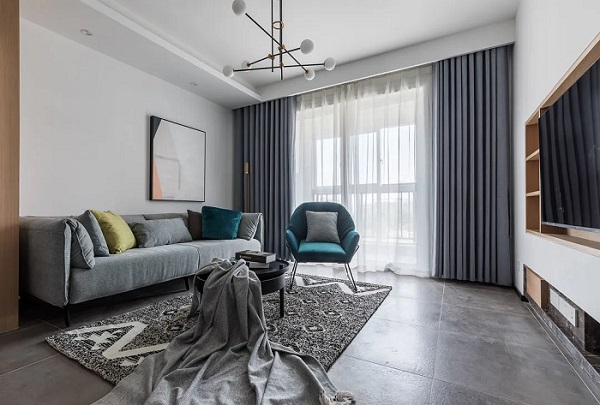 客廳面積不大,裝修上避免了厚重的大件家具,以輕巧實用家具為主,不僅騰出更多的活動空間,還讓客廳看起來更簡潔大氣。簡易的吊頂設計,讓空間更具層次感,同時也讓窗簾安裝更為美觀。