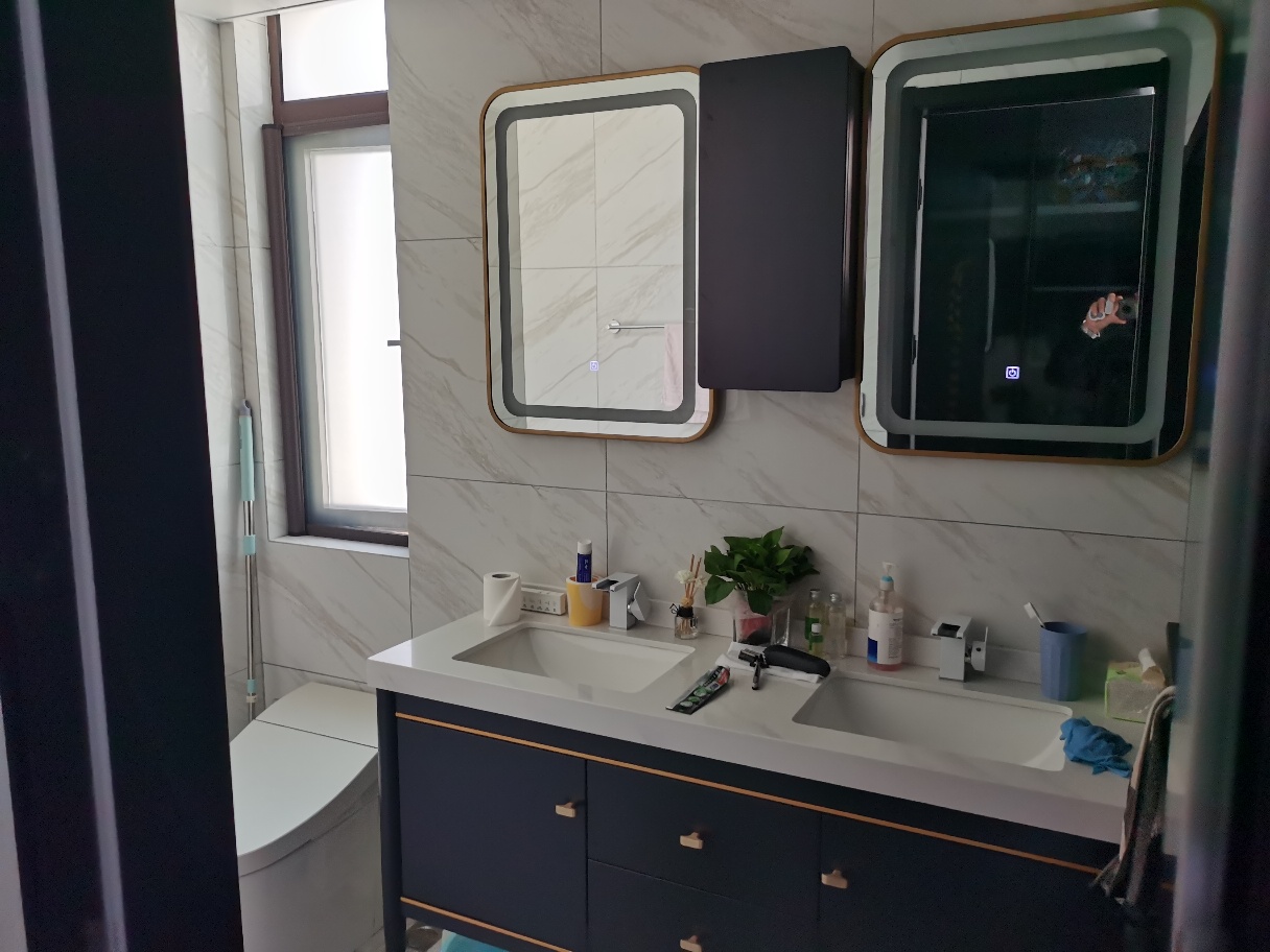 ??2、由于規格較為窄小,所以利用鏡子進行擴容是很常見的一種方式,簡單樣式的鏡面,掛在洗手臺上方,十分適宜,不過切勿將鏡子與馬桶正對,否則破壞風水,另外若是實體墻的浴室,可在墻壁適宜位置摳出一些儲物空間,既節省又實用。