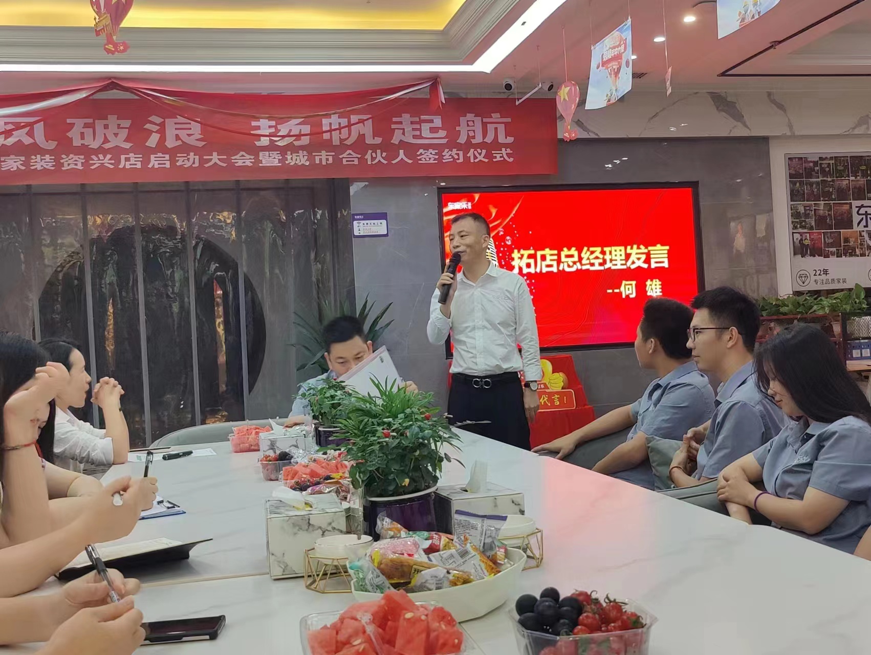 6月5日下午,東家樂家裝資興分公司拓店啟動大會暨簽約儀式于郴州分公司圓滿舉行;資興歷史悠久、人文薈萃,抱著堅持幫助千萬家庭快樂裝修的使命,東家樂家裝在此也揚帆起航!