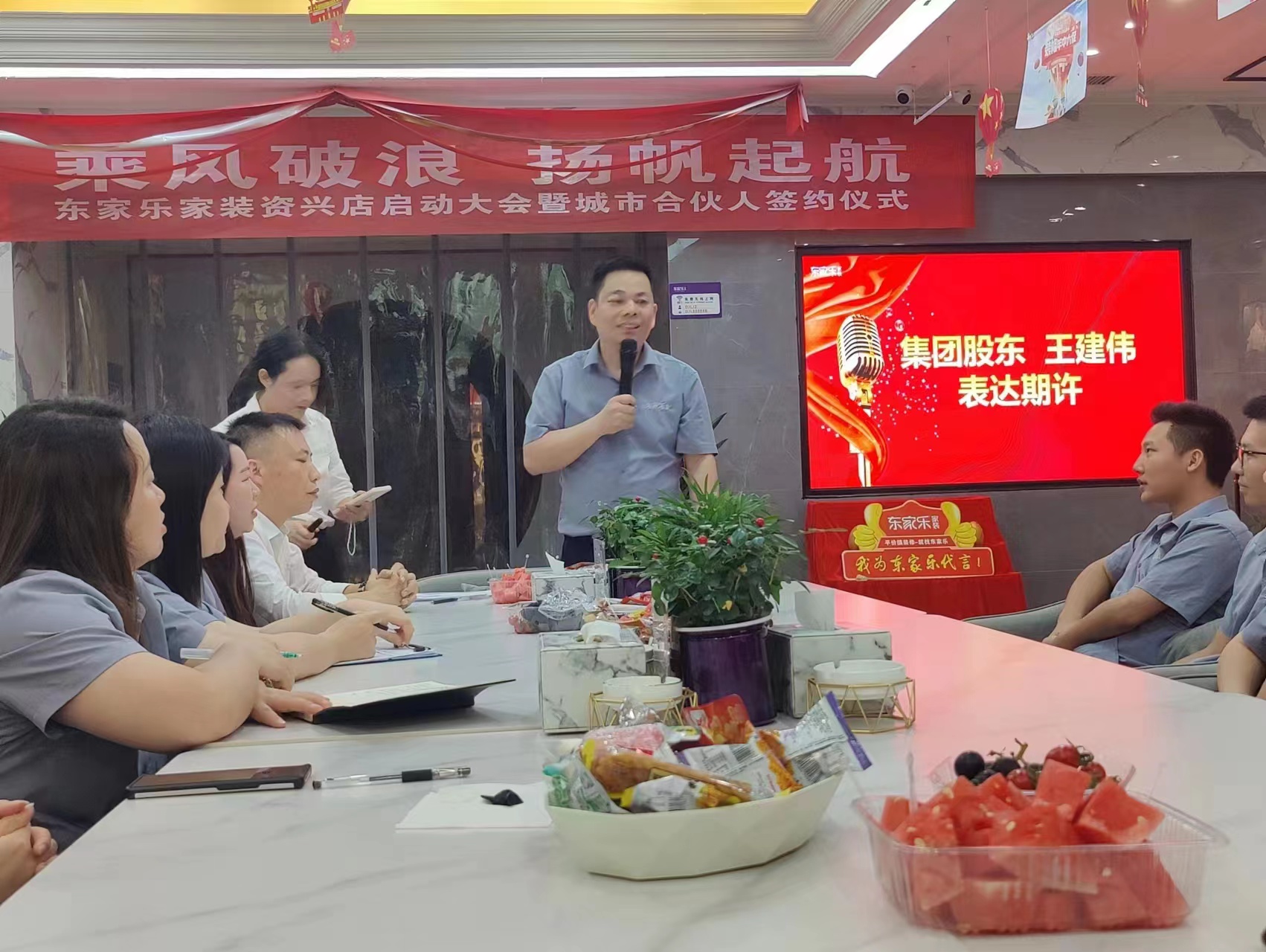 集團人力資源總監楊俊對資興團隊表達期許與祝愿,秉承著東家樂家裝企業文化,兌現東家樂的發展目標。讓千萬家庭快樂裝修,我相信我們團隊一定能干好,奔赴資興的初衷一定能夠達成。