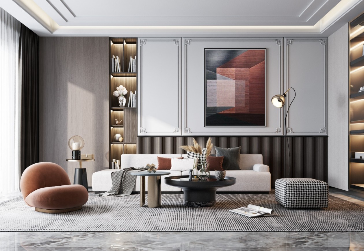 硬裝是指在傳統(tǒng)家裝過程中進行的基本結(jié)構(gòu)改造和裝飾工作,包括拆墻、涂刷涂料、安裝吊頂、鋪設管線和電線等。這些裝飾元素通常是固定且不可移動的,它們旨在滿足房屋的基本結(jié)構(gòu)、布局、功能和美觀需求。
