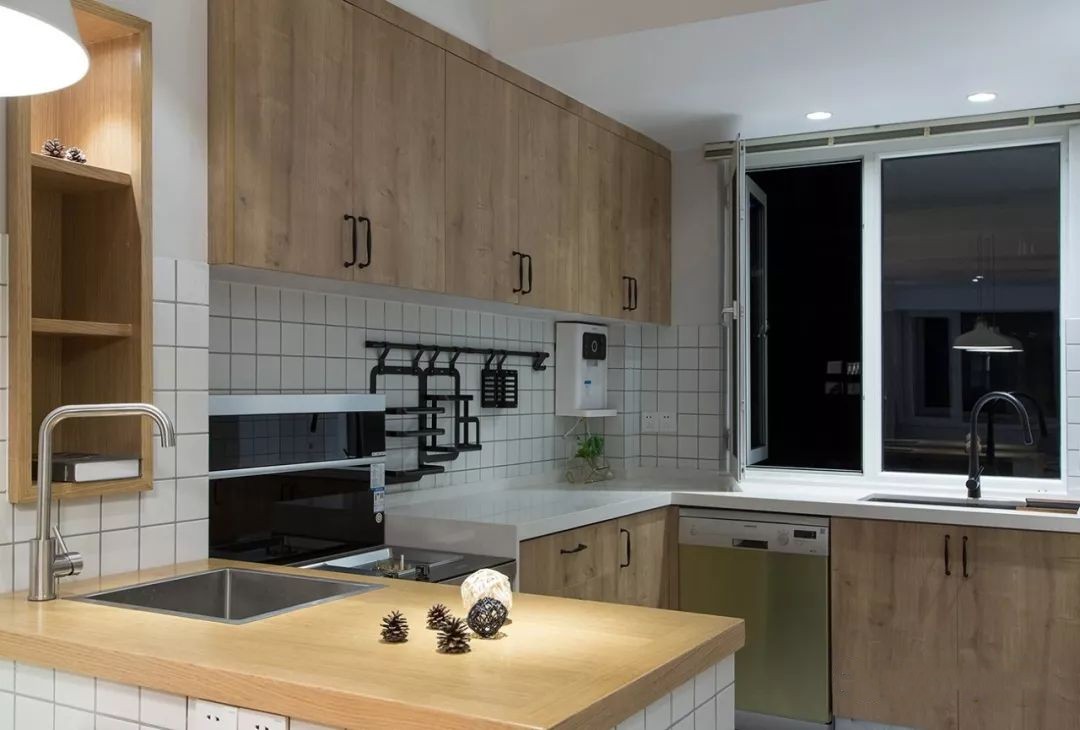 第四點,清洗區(qū)用于清洗食材、餐具和炊具。在設(shè)計時,需要合理地將洗滌盆和洗碗機(jī)放置在一起,并確保周圍有足夠的櫥柜和架子,以存放干凈的餐具和清潔劑。在清洗區(qū)附近設(shè)置儲物柜,方便存放清潔用品和其他相關(guān)物品。