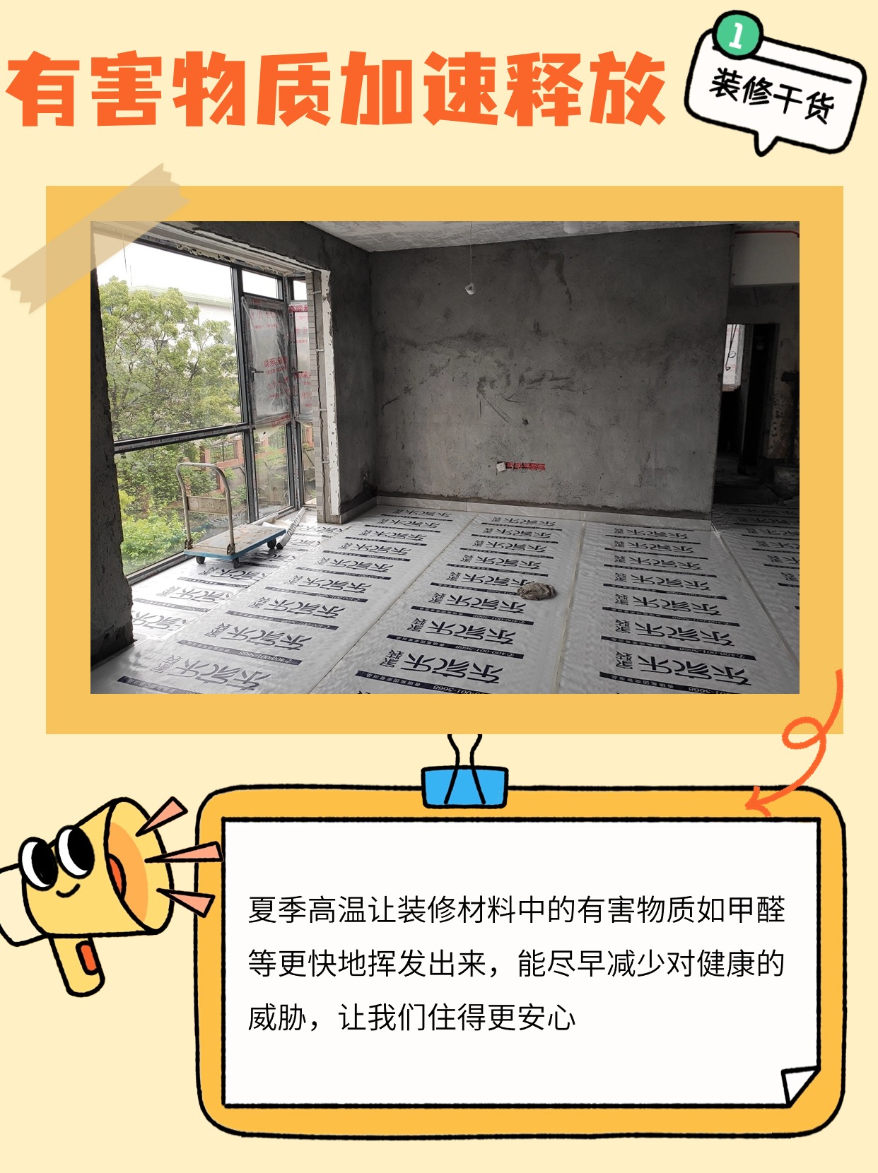 夏季高溫讓裝修材料中的有害物質如甲醛等更快地揮發出來,能盡早減少對健康的威脅,讓我們住得更安心