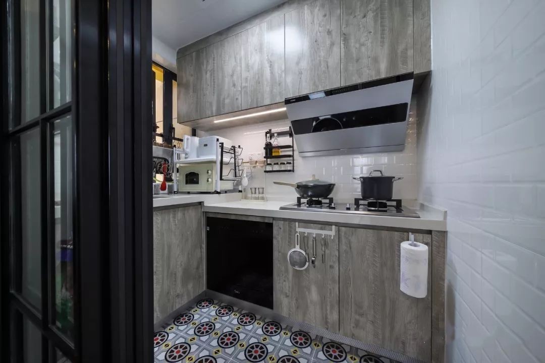 一字型布局適合空間有限、狹長的小戶型廚房,將洗滌、烹飪和儲物區域都放置在同一水平線上,可以節省空間。然而,一字型布局可能會遇到備菜區域太小的問題,所以對于狹長的廚房來說,更適合采用一字型布局。