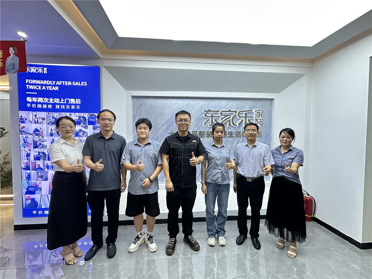 校方領導到達后,李君總帶領參觀公司展廳、辦公場地和設計案例等。其中,優(yōu)秀實習生陪同參觀這一環(huán)節(jié)成為亮點,讓學校一行對東家樂集團有了更深入的了解。
