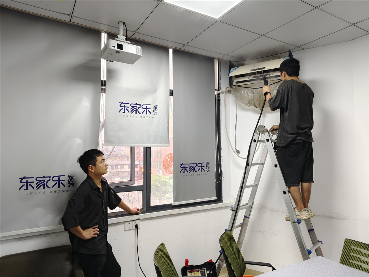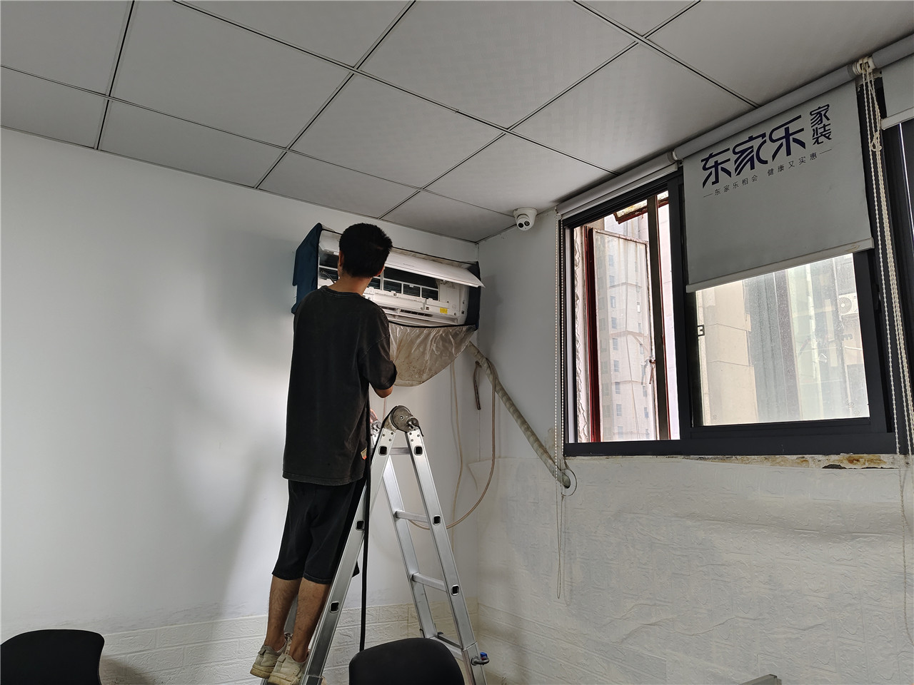 為保證集團總部各部門的健康工作環境,東家樂家裝集團董事辦組織專業空調清洗隊伍對集團總部各部門辦公室內的空調進行清洗及維護保養,確保空調能夠正常運行的同時,保障員工辦公環境的身心健康。