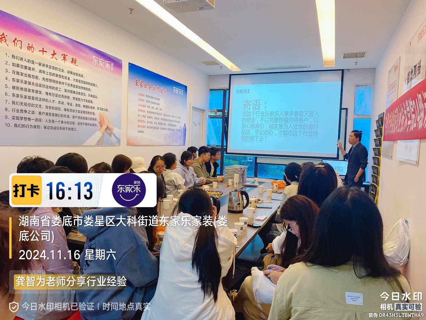 本次課程學習得到婁底職業技術學院領導和老師的大力支持與信任,參與本次行業認知學習的同學為24級訂單班,班主任徐維老師也對我們表達了非常的認可。參與本次課程培訓的授課講師有:羅霄(東家樂集團董事長執行助理)、史月成(東家樂集團大區總經理)、龔智為(東家樂五一店設計主管)、沈水青(東家樂婁底設計師)、彭維亮(東家樂婁底設計師)。