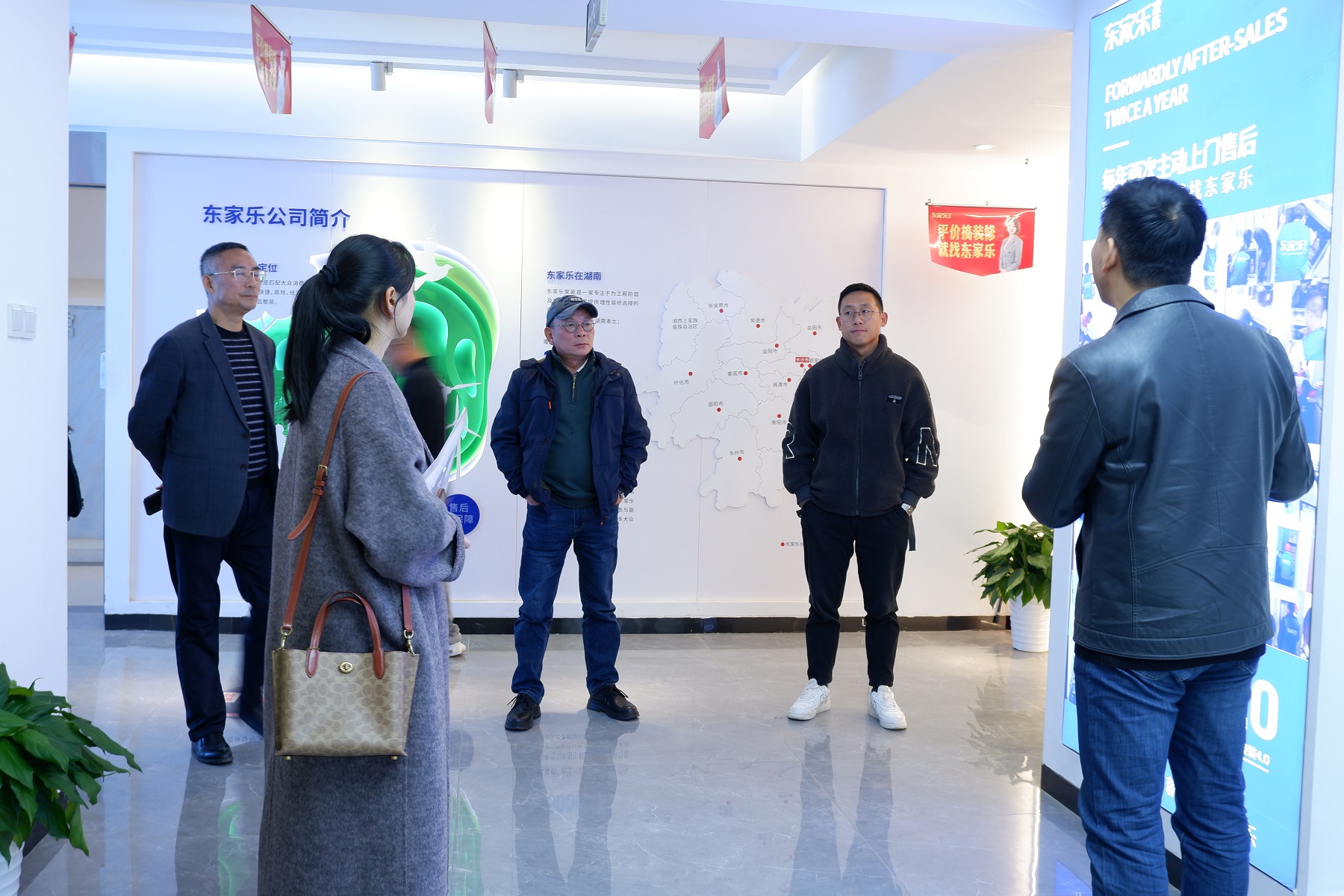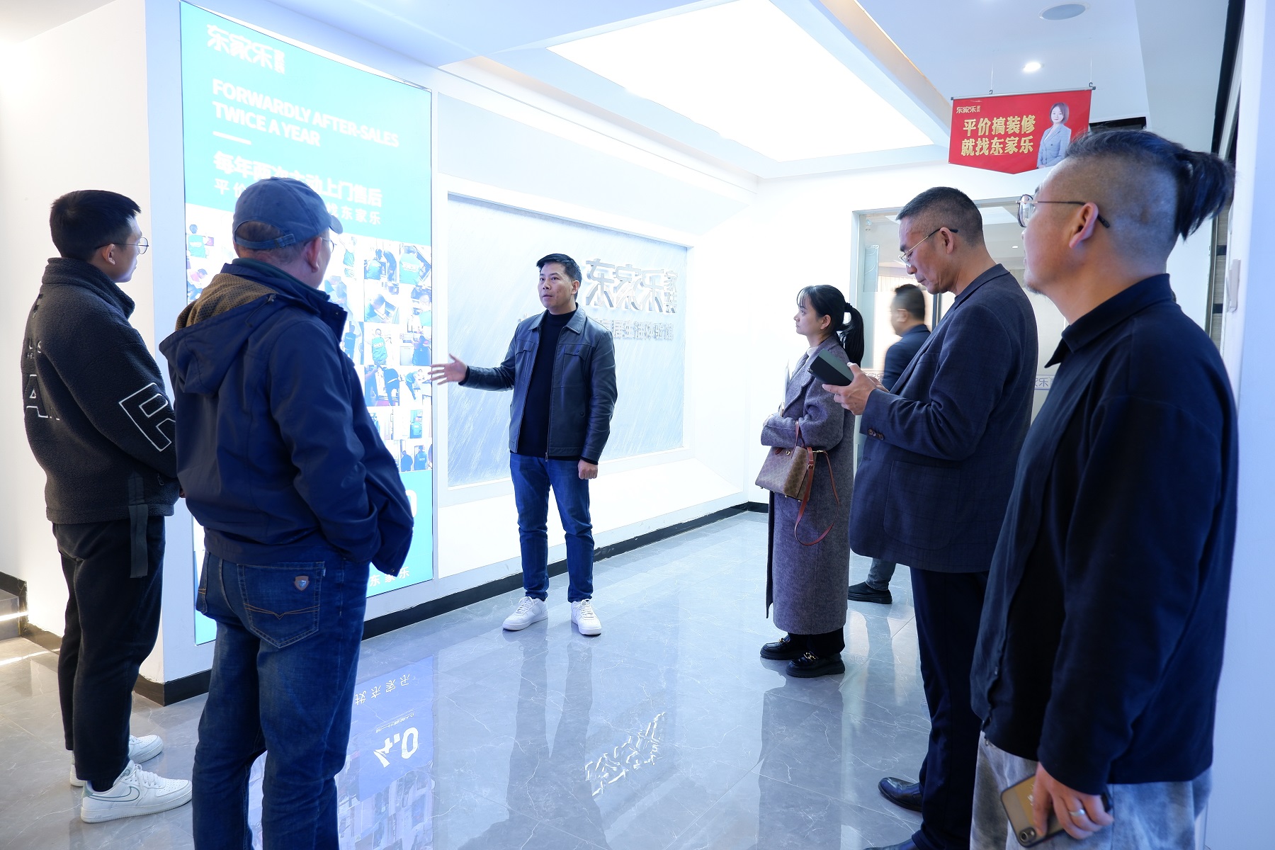 會議伊始,在袁家?guī)X副總李君總的帶領(lǐng)下,湖南幼專一行興致勃勃地參觀了東家樂家裝的材料展廳和生活家居體驗館。豐富多樣的材料展示與精心設(shè)計的家居場景,讓校方人員對家裝行業(yè)的前沿產(chǎn)品與設(shè)計理念有了直觀感受,也為后續(xù)合作的深入探討奠定了良好基礎(chǔ)。