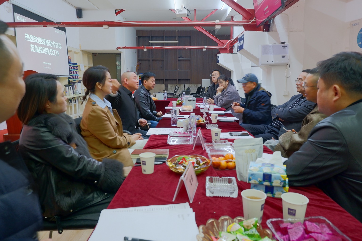 2024年11月27日下午,湖南幼兒師范高等專科學(xué)校與東家樂家裝于東家樂家裝袁家?guī)X公司成功舉行校企合作交流會議,雙方就人才培養(yǎng)、實習(xí)就業(yè)等多方面合作展開深入探討,為校企協(xié)同育人描繪出宏偉藍圖。湖南幼專黨委副書記、校長高金平,藝術(shù)學(xué)院院長夏銘,藝術(shù)學(xué)院副書記涂海峰,藝術(shù)學(xué)院副院長文平、張群,藝術(shù)學(xué)院設(shè)計教研室副主任周浩等校方領(lǐng)導(dǎo)出席會議。東家樂集團董事長張勇、大區(qū)總經(jīng)理龍麗、袁家?guī)X分公司副總經(jīng)理李君、集團人力資源副總監(jiān)兼商學(xué)院副院長賈賢杰、以及集團總部校企合作執(zhí)行負(fù)責(zé)人劉媛、陳美嫻等共同參與此次交流。