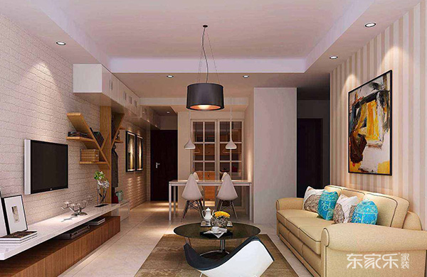 小戶型客廳裝修,電視背景墻設計風格要簡潔,盡量避免太過復雜的造型設計,否則就會導致客廳狹小的空間更加擁擠和凌亂,吊頂位置也不要太過復雜,這樣才能保證更為簡潔大氣的設計效果,還能凸顯出裝修設計風格的特點,自然就會讓客廳空間感變得更強,避免因為造型設計復雜,而感覺視覺太過擁擠凌亂。