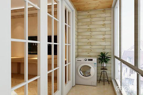 主臥靠著窗戶的地方,運用了巧妙的隔斷,而且這個隔斷就是白色的玻璃推拉門,我覺得設計的很是巧妙,更重要的是隔斷推拉門真的是很簡約漂亮,與陽臺做了一個隔斷,打造一個獨立空間的小陽臺,陽臺用來安裝洗衣機,當做一個可以洗衣晾曬衣物的陽臺,不僅比較實用同時也顯得更加敞亮。