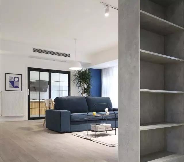 電視墻延伸銜接水泥灰儲(chǔ)物柜,灰白結(jié)合既簡(jiǎn)約又顯高級(jí)。電視柜太占用空間,不如一塊隔板架來的實(shí)在,簡(jiǎn)約實(shí)用好打掃。