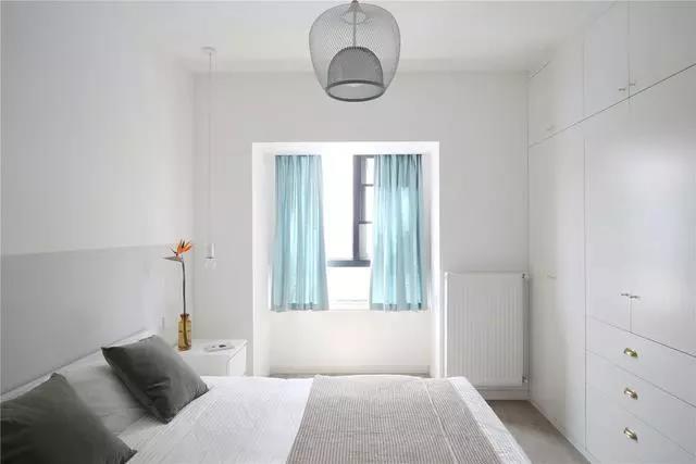 臥室簡(jiǎn)約大方,白色為主調(diào)毫無違和感。窗簾顯得格外醒目,一抹淡藍(lán)活躍空間。床尾整排的儲(chǔ)物柜,為臥室提供了良好的收納空間。