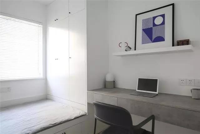 小房間榻榻米一體設(shè)計(jì),既可以是書房,也可以是臥室,還有大量的儲(chǔ)物空間。隔板架取代書柜,簡(jiǎn)易實(shí)用占用空間小,很適合小空間布置。