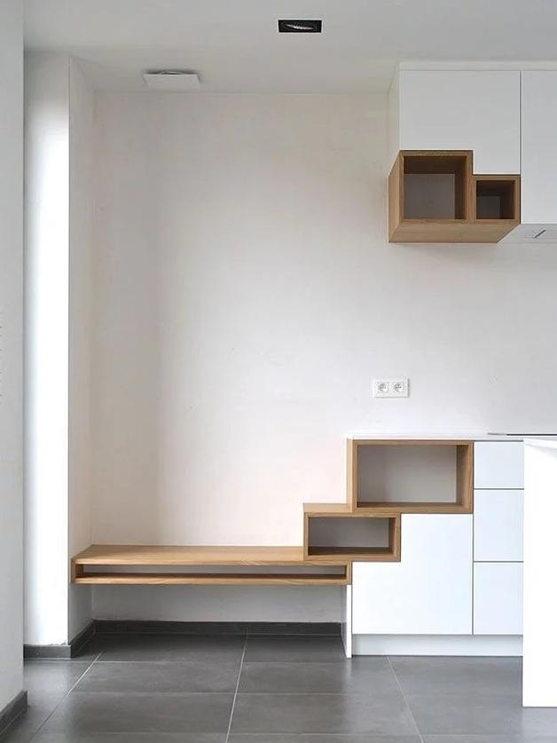 上方式鏤空的展示臺(tái),下方是鞋柜的設(shè)計(jì),放置在客廳和入戶門之間,可以建立一定的阻隔,使客廳保持一定的隱私設(shè)計(jì),且不占用太多的面積,加強(qiáng)空間的獨(dú)立性。