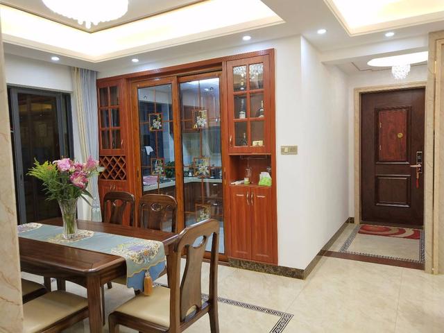酒柜做的比較小,隔在廚房和餐廳之前,省了點空間。餐桌和酒柜是我家先生喜歡的顏色,其實我內心是拒絕的,想和客廳一個色調,但是人家喜歡,好吧!效果出來其實還是能接受吧!