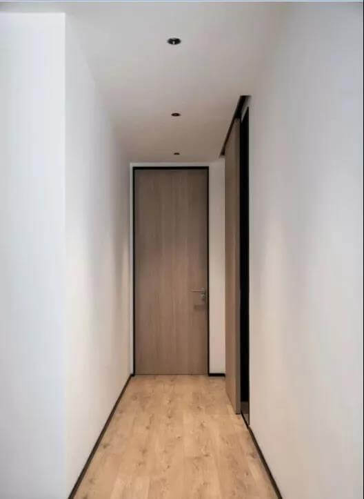 走廊門為了搭配踢腳線設計成了黑色窄邊門,現代簡約,看起來干凈利落。