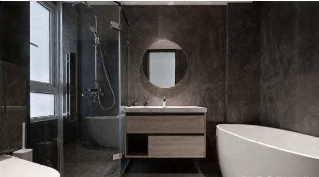 主衛的墻面和地面采用灰色地磚,耐臟好打理,滿滿的高級文藝范,是實用主義的不二之選。客衛選擇灰色和木色搭配,簡單純粹。