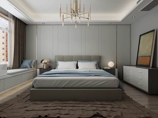 現(xiàn)代輕奢侈風格雖然也是一種現(xiàn)代風格,但不同于傳統(tǒng)的現(xiàn)代風格,現(xiàn)代輕奢侈與色彩的運用形成了鮮明的對比。常用的高級黑色和高級灰色作為一種表現(xiàn),給人一種空間整潔的感覺。并將添加亮度較高的駝色、象牙白色等,為臥室呈現(xiàn)一種溫馨的氛圍、時尚典雅的風格。