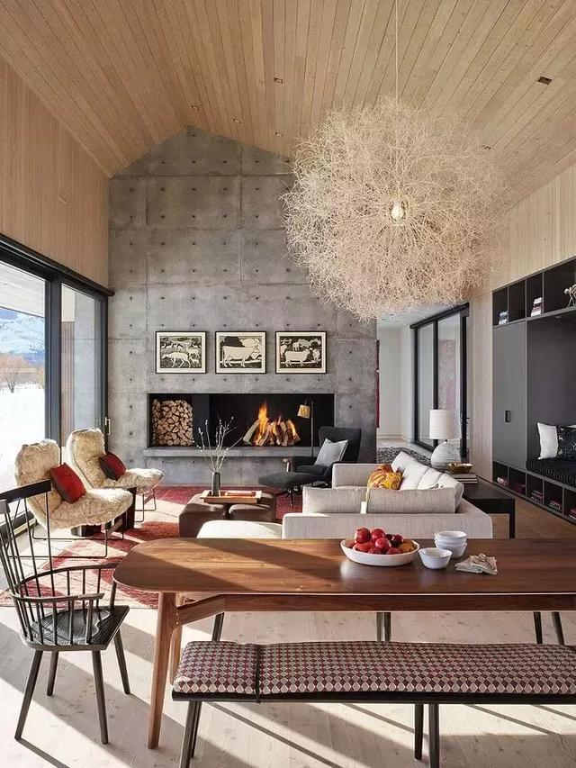 不放電視,那么客廳在設計時就要多考慮裝飾元素,把電視機處換成其他元素代替,如: