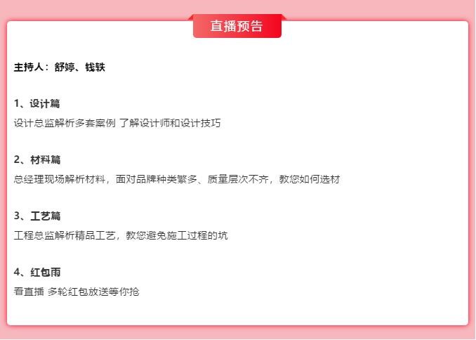 除了為廣大業(yè)主帶來(lái)了店面優(yōu)惠,東家樂(lè)家裝還將在7月22日晚上19:30開(kāi)啟線上萬(wàn)人搶裝修的直播會(huì),并于直播期間,現(xiàn)場(chǎng)深度剖析設(shè)計(jì)要點(diǎn)、選材技巧,并解析施工工藝,教你如何避免施工過(guò)程的可能遇到的坑,同時(shí)還有多輪無(wú)門(mén)檻紅包等你搶。凡在直播期間交500元訂金的業(yè)主即享5000元裝修總價(jià)直減券、4000元免費(fèi)設(shè)計(jì)券以及市場(chǎng)價(jià)值1999元的拜爾茨智能鎖等,真正讓500元定金翻了20多倍。