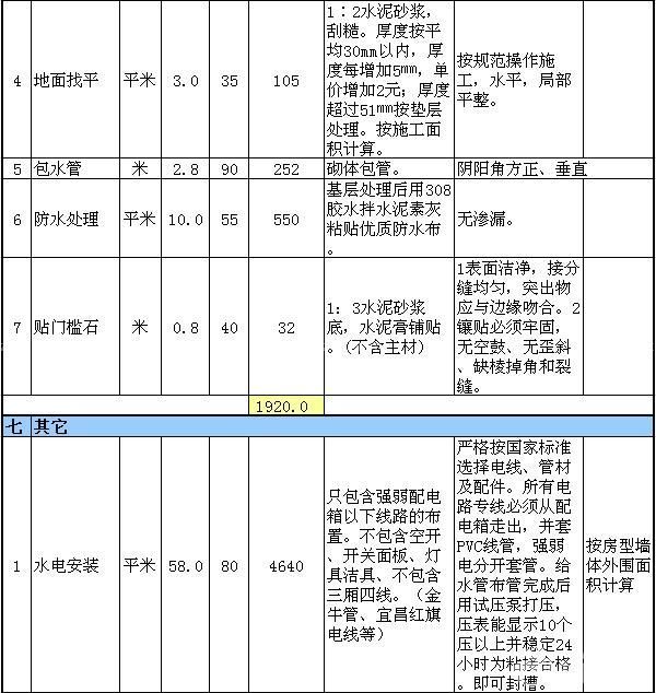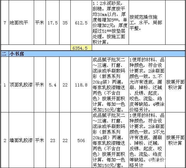 ②施工貓膩:在施工工藝欄模糊不清,很容易因為施工中需要的一些特殊輔料進行增項要求,這點要注意。