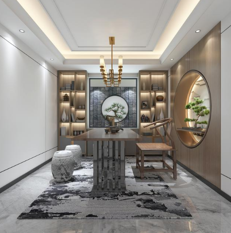 在簡約的基礎上添加了一些中式的元素,不管是會友還是自酌都十分的有意境。沏一壺茶,煮一杯酒,這樣的生活真令人向往。