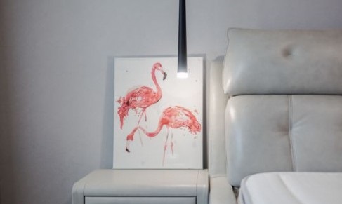床頭兩邊利用極簡吊燈作為點綴,平衡了臥室原本冷峻的色彩,暖色燈光和適當金屬元素的加入,營造出舒適、放松的氛圍。