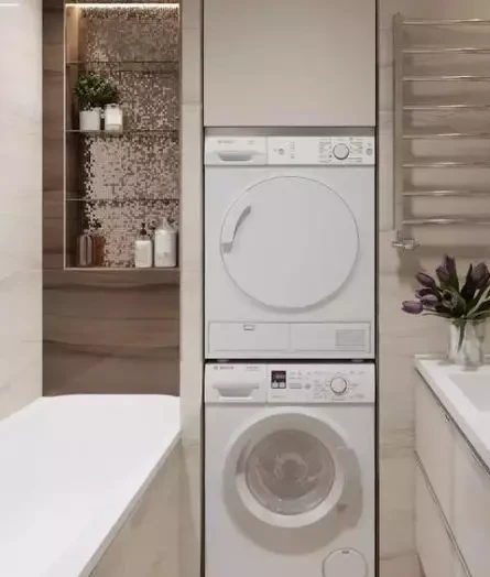 如果想在衛生間擺放洗衣機,可以采用嵌入式設計,不占空間,整體性強,看著整潔大方,廚房空間最常用的方式;