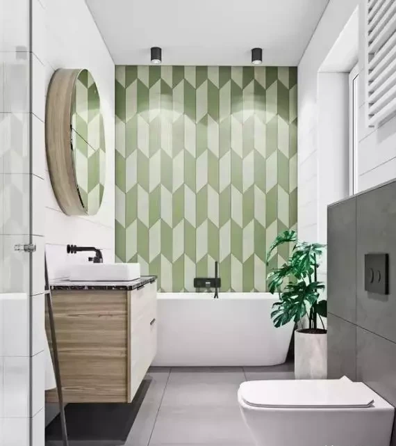 一般衛生間鋪貼灰色、米色瓷磚,看著干凈舒服,但我們可以在部分區域鋪貼花磚,裝飾效果好,空間感強烈,不過,千萬不要全鋪,容易讓人眼花繚亂;
