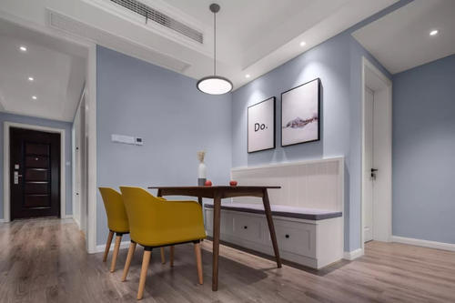 2、餐廳。餐廳是一家人用餐的地方,光線最好有高顯色性,并以柔和的暖色調燈具為宜。這樣不僅可以增加食欲,同時更能顯示出溫馨的氣氛。這里推薦可以選擇吸頂燈、餐吊燈等,而且吊燈一般都垂直于餐桌真上方。