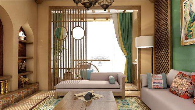 東南亞風格的裝飾中,室內所用的材料多直接取自自然。東南亞風格散發著濃烈的自然氣息,色澤上以木材、藤、竹為主,在視覺感受上有泥土的質樸、原木的天然材料搭配、布藝的恰當點綴。