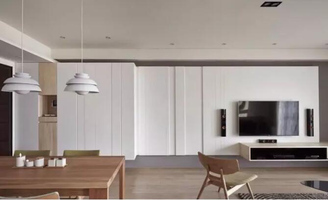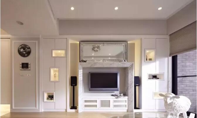 不同的客廳面積適合不同的電視柜款式,同時要結合客廳的形狀、戶型來設計,如果客廳較寬敞,可以優先考慮整面收納電視墻;