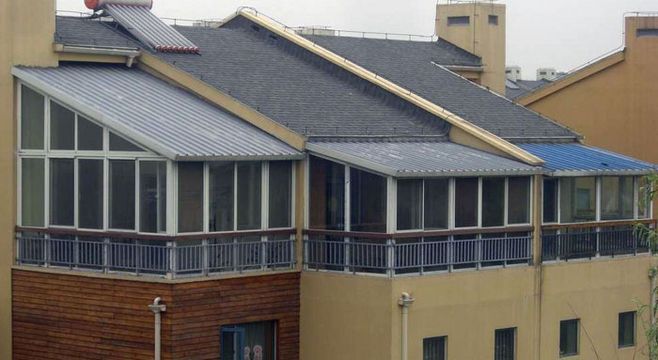 彩鋼頂陽光房在國(guó)內(nèi)慢慢的也比較常見了。彩鋼板裝修陽光房的隔熱和保溫性都比較好,但是由于彩鋼板不透光,且相對(duì)來說色調(diào)比較單一,所以并不是比較上檔次的裝修材料。