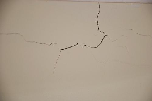 這是最常見的房屋裂縫,這種裂縫主要影響的是房屋外觀,可以適當采取一些補救措施:在裂縫處貼無紡布、PVC網格布等,再用涂料進行粉刷修補。