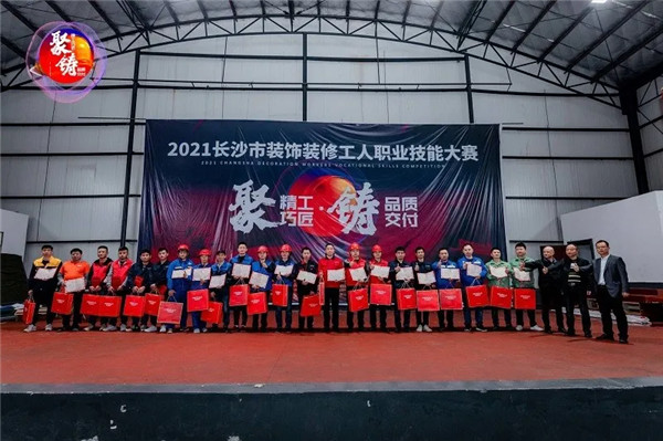 乘風破浪展風采,奮勇拼搏創(chuàng)佳績!經(jīng)過選手們的激烈角逐,經(jīng)過評委團專業(yè)評審,共計有45組選手脫穎而出,獲得由長沙市建筑裝飾裝修行業(yè)協(xié)會頒發(fā)的“精工巧匠標桿個人”榮譽。同時也向表現(xiàn)突出的參賽單位頒發(fā)了大賽優(yōu)秀組織獎,以資鼓勵。