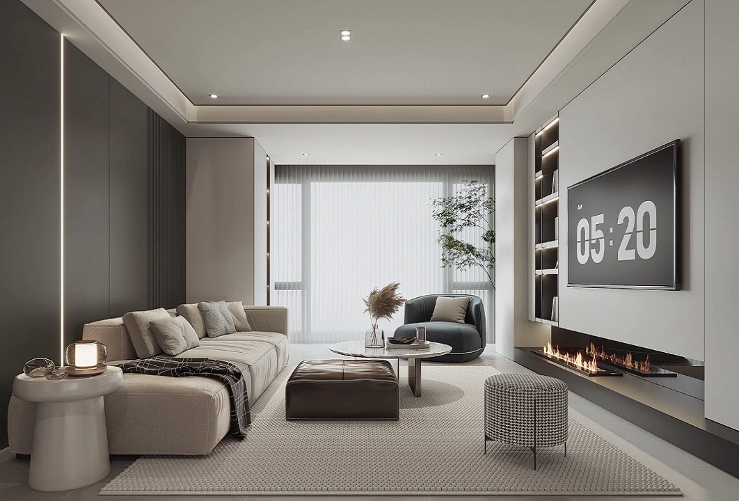 現代簡約風傾向于中性色調,如白色、灰色、米色等,這些顏色純凈且具有延伸感,能夠營造出寬敞明亮、通透舒適的空間氛圍。同時,通過簡潔明快的線條勾勒出清晰的幾何形態,展現出現代建筑藝術的力量感和秩序美。